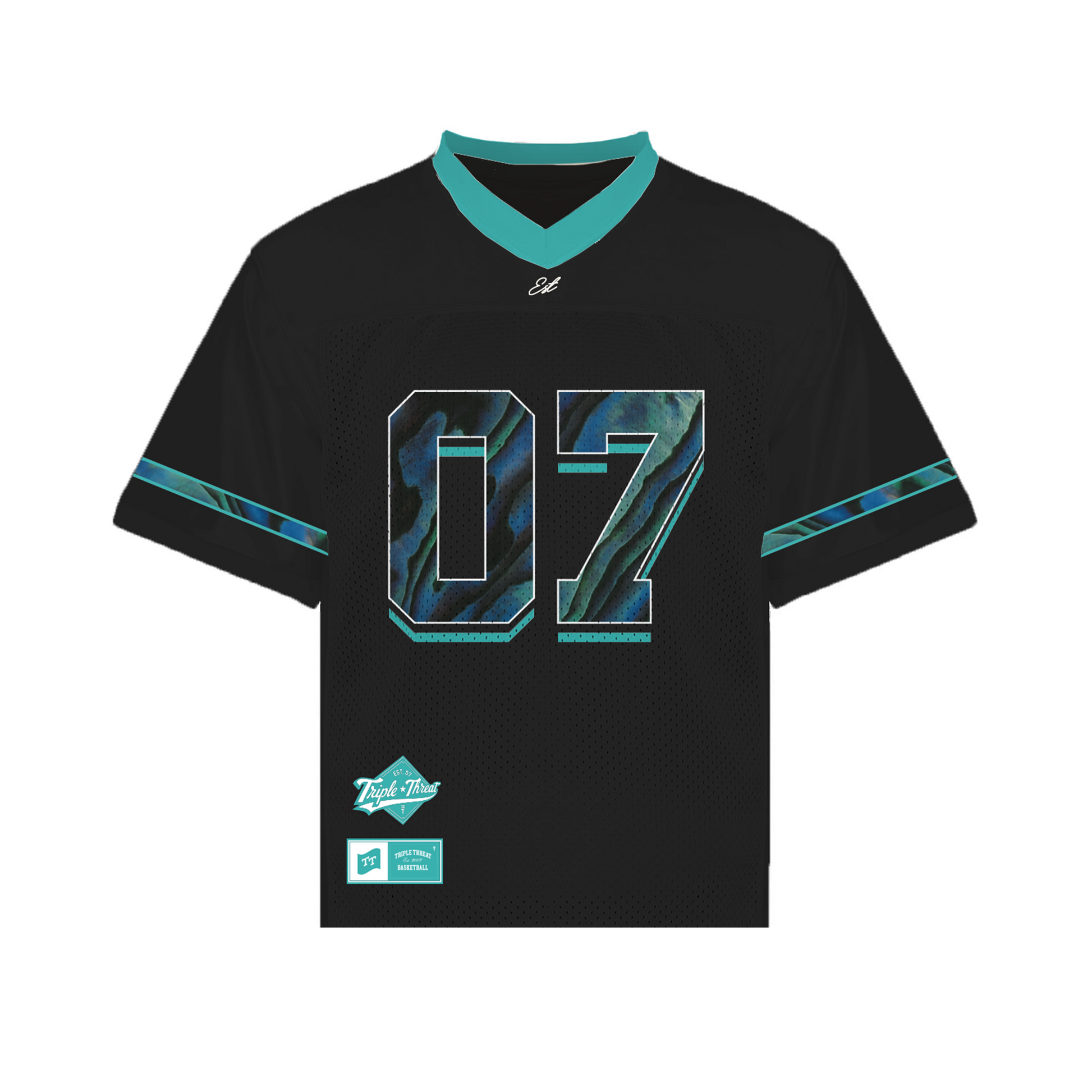The oversized "07" graphic takes centre stage with a paua shell-inspired pattern, blending oceanic hues of blue, green and black to deliver a statement look. Accented by teal trim on the V-neck collar and paua on the sleeves, this jersey turns heads both on and off the field.